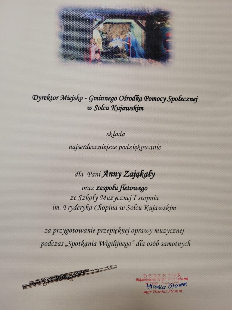 13.01.2023 r. przed jubileuszowym koncertem z okazji 70-lecia Filharmonii Pomorskiej im. I.J. Paderewskiego w Bydgoszczy, odbyła się uroczystość, podczas której honorową odznakę Ministra Kultury i Dziedzictwa Narodowego „Zasłużony dla kultury polskiej”, otrzymała nasza nauczycielka mgr Beata Dzikowicz. Gratulujemy i życzymy dalszych sukcesów!