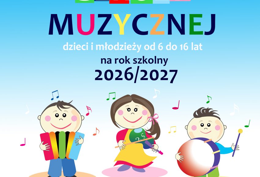 Nabór do Szkoły Muzycznej na rok szkolny 2026/2027 Termin składania dokumentów 01.03.2026 r. – 19.05.2026 r. Badania przydatności kandydatów 20-22.05.2026 r. godz. 15:30-17:30 Podanie do Szkoły Muzycznej