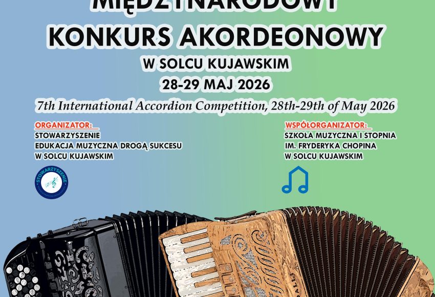VII Międzynarodowy Konkurs Akordeonowy w Solcu Kujawskim – zaproszenie – 28-29.05.2026 r.