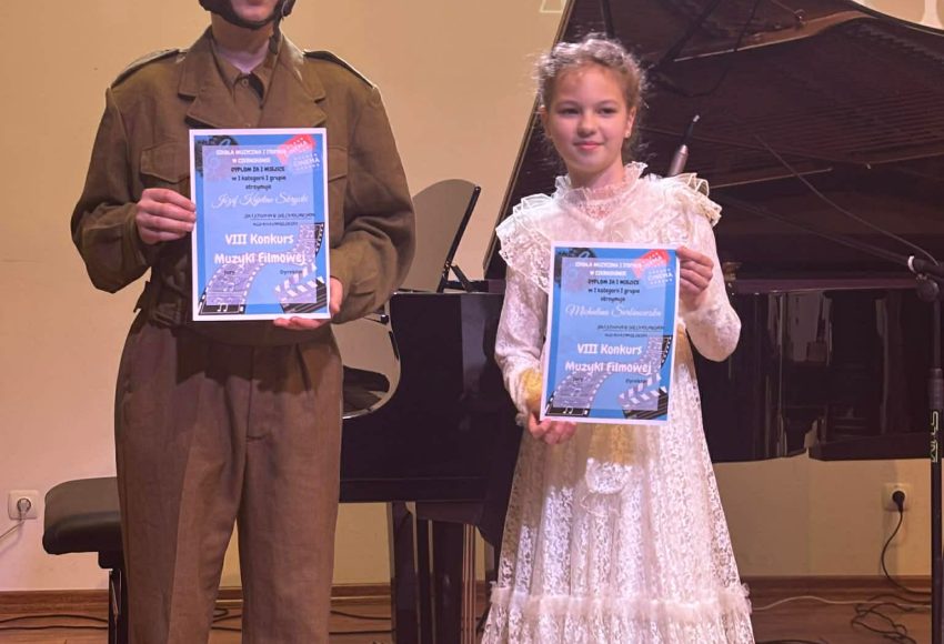 Michalina Serbinowska i Kajetan Skrycki – uczniowie klasy organów mgr Anny Chmielewskiej – zajęli Ex aequo 1 miejsce w międzyszkolnym konkursie muzyki filmowej w Czernikowie. Kajetan prezentował utwór z filmu Pearl Harbor a Michalina z serialu Stulecie Winnych. Serdeczne gratulacje!