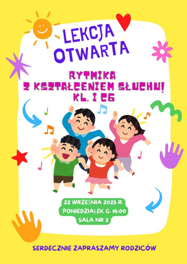 19 września, 2025 Lekcja otwarta – klasa I c6 – Rytmika z kształceniem słuchu – 22.09.2025 r. – zaproszenie