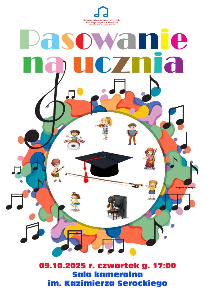 Serdecznie zapraszamy uczniów klas pierwszych obu cykli wraz z Rodzicami na uroczystość Pasowania na ucznia Szkoły Muzycznej!